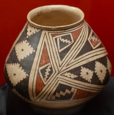 The Rio Grande forms the southern boundary of the state, separating it from Mexico. Starting in the west, in the city of El Paso, you can find several sites/museums dedicated to the early peoples. The El Paso Museum of Archaeology has a small, but notable, collection of the works of early people - primarily pottery. At the time of our visit (September 11, 2019) one side of the museum consisted on dioramas and the other side consisted of a modern pottery collection, in part. The rest of the room was dedicated to pottery and other artifacts of the early people, primarily from the Casas Grandes Culture. The central meeting room has artifact drawers which may be viewed.