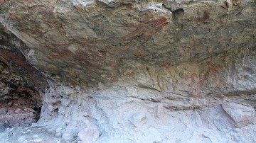 Some of the red rock in the shelter which may have been used to color the petroglyphs.