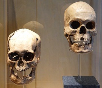 (L) Skull from Coxcatlán, Puebla (5535 - 5475 BCE) (R) Skull from Ceva Tecolote, Hidalgo (5050 - 4855 BCE)Museo Nacional de Antropología (MNA), Mexico City, Mexico